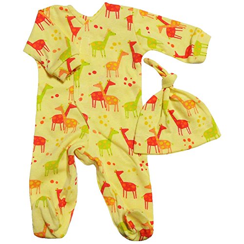 【未熟児】【低出生体重児】【早産児】【NICU】用 ベビー服: 長袖カバーオール 帽子付き ジラフ (1800-2700g)