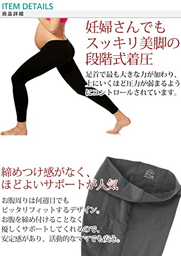 - 脚のむくみや、負担軽減、ハリ足の予防にもなる段階式の着圧ストッキングは、妊婦さんの間でも絶大な指示を得ています。