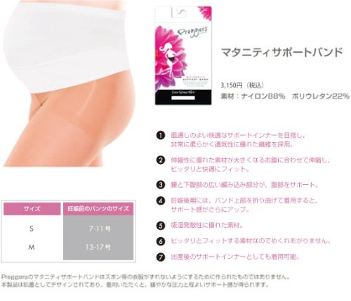 Preggers[プレッガーズ]マタニティサポートバンド(妊婦帯)サイズS(妊娠前パンツサイズ7ー11号)ホワイト47313