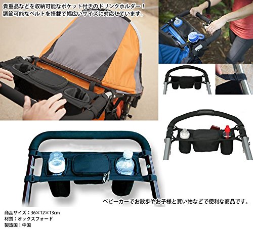[Present-web] ベビーカー用 ボトルホルダー 小物収納付き! 簡単取付 ペットボトル ベルト調整 お買い物 散歩