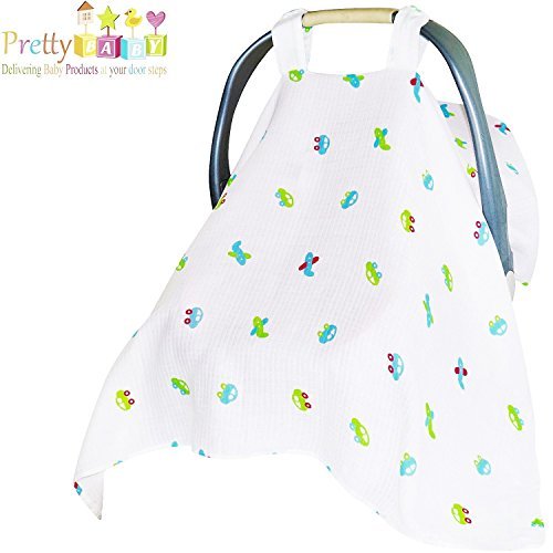 Baby Car Seat Covers To Protect From Sun Burn, Bugs, & Dust. Soft & Breathable Muslin Cotton Baby Car Seat Canopy Can Used As Stroller Cover, Nursing Cover, Receiving Blankets, Swaddle For Boy & Girl. by Pretty Baby