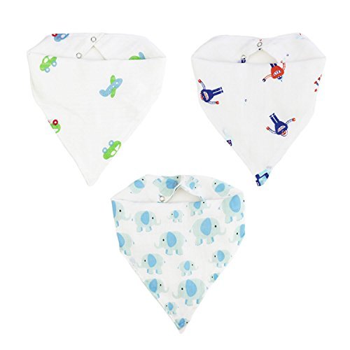 THREE CUTE BABY BIBS AND ADORABLE DESIGNS:- Our fancy baby bibs come in pack of 3 cute and adorable designs. Made by 100% Muslin Cotton. Our baby bib and burp cloths come for either baby boy or baby girl.;BANDANA BABY BIBS MADE BY SUPER SOFT MUSLIN COTTON FABRIC:- Our lightweight baby bandana bibs are made by 100% Organic Muslin Cotton material. Muslin baby bibs are hypoallergenic and extremely breathable, super soft to your baby's skin. Just like you Mom. Baby drool bibs will absorb toughest baby's drips and spills.;ADJUSTABLE DOUBLE NICKEL-FREE SNAPS - Our baby bibs and burp cloths set comes with two nickel-free snaps. The snaps are secure, your baby will not pull them off. They can be used as baby burp bibs.;SUPER ABSORBENT COTTON BANDANA BIBS :- Our stylish personalized baby bandana drool bibs are made by multi layers super absorbent cotton which keeps dribble and drools away from you baby. Our baby burp cloth are perfect for teething. They can be also used as teething bibs;ORDER NOW AND CHECK OUR OTHER BABY PRODUCT FOR BABY SHOWER GIFTS:- Buy with Confidence, We are so confident that you will like our baby products for baby shower gifts for boys and girls that, we offer 60 days money back Guarantee. Type Pretty Baby Products in Search Bar and Browse our entire line of Baby Products which includes baby swaddle, baby car seat covers, baby crib sheets, baby teething necklace, baby blankets and baby wash cloths