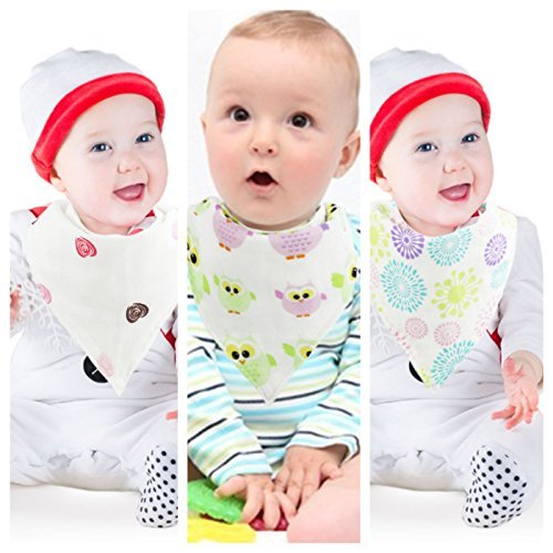 THREE CUTE BABY BIBS AND ADORABLE DESIGNS:- Our fancy baby bibs come in pack of 3 cute and adorable designs. Made by 100% Muslin Cotton. Our baby bib and burp cloths come for either baby boy or baby girl.;BANDANA BABY BIBS MADE BY SUPER SOFT MUSLIN COTTON FABRIC:- Our lightweight baby bandana bibs are made by 100% Organic Muslin Cotton material. Muslin baby bibs are hypoallergenic and extremely breathable, super soft to your baby's skin. Just like you Mom. Baby drool bibs will absorb toughest baby's drips and spills.;ADJUSTABLE DOUBLE NICKEL-FREE SNAPS - Our baby bibs and burp cloths set comes with two nickel-free snaps. The snaps are secure, your baby will not pull them off. They can be used as baby burp bibs.;SUPER ABSORBENT COTTON BANDANA BIBS :- Our stylish personalized baby bandana drool bibs are made by multi layers super absorbent cotton which keeps dribble and drools away from you baby. Our baby burp cloth are perfect for teething. They can be also used as teething bibs;ORDER NOW AND CHECK OUR OTHER BABY PRODUCT FOR BABY SHOWER GIFTS:- Buy with Confidence, We are so confident that you will like our baby products for baby shower gifts for boys and girls that, we offer 60 days money back Guarantee. Type Pretty Baby Products in Search Bar and Browse our entire line of Baby Products which includes baby swaddle, baby car seat covers, baby crib sheets, baby teething necklace, baby blankets and baby wash cloths