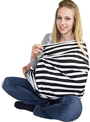 Pretty See 授乳中の授乳カバー幼児の男の子と女の子、黒と白のための多目的ストレッチ看護ショール