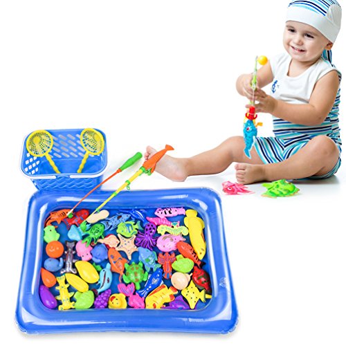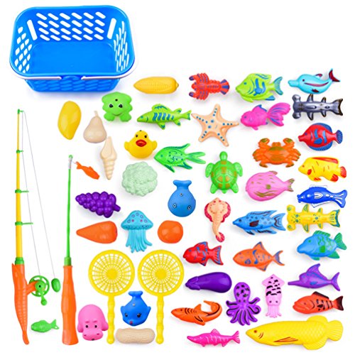Pretty See 子供の磁気釣りのおもちゃ教育の子供のバスおもちゃのおもちゃのおもしろい魚のプレイ2歳の子供のために適して2磁気ロッドで設定され、52のセット