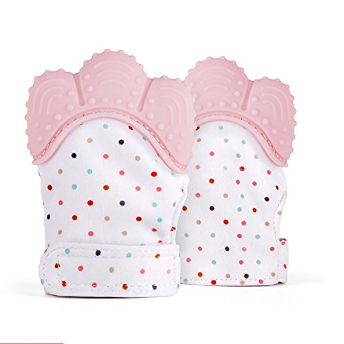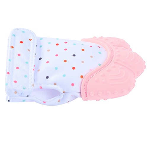 Pretty See ベビー愛用 歯みがき 歯がため 歯固め 赤ちゃん用手袋 食品級シリコン 綿100% 手を噛まないように保護 歯ぐきに刺激を与え (ピンク)