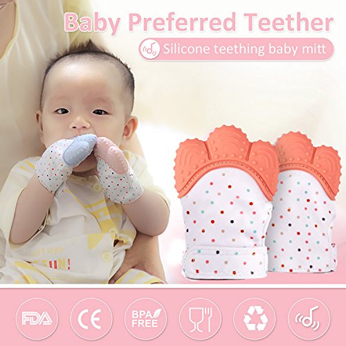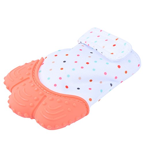 Pretty See ベビー愛用 歯みがき 歯がため 歯固め 赤ちゃん用手袋 食品級シリコン 綿100% 手を噛まないように保護 歯ぐきに刺激を与え (オレンジ)