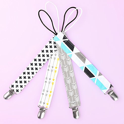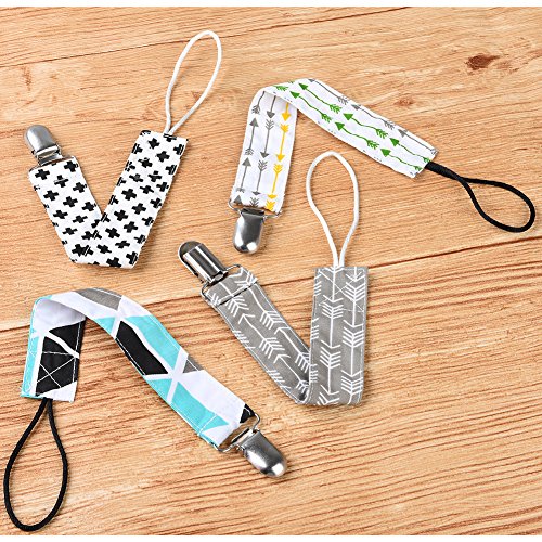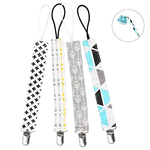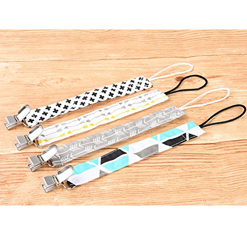 Pretty See おしゃぶりのクリップセット綿のおしゃぶりのクリップ幼児の男の子と女の子のためのソリッドクランプ付きのおしゃれなおしゃぶりホルダー、4つのセット (02)