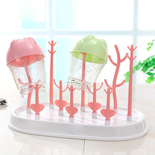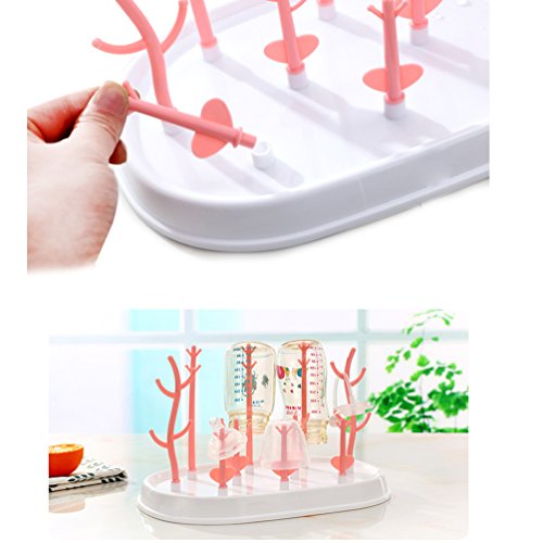 Pretty See ベビーボトル乾燥ラックプラスチックボトルドライヤー防塵ボトルパーツ多目的ベビーニップルオーガナイザー、ホワイト、ピンク