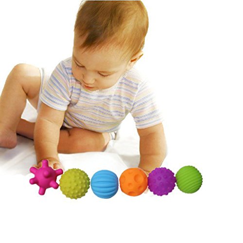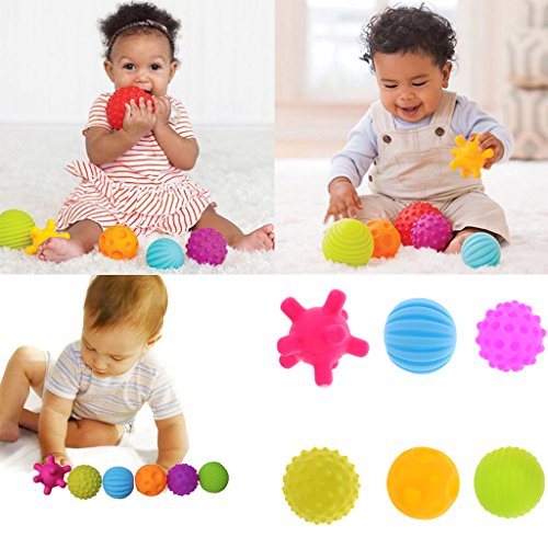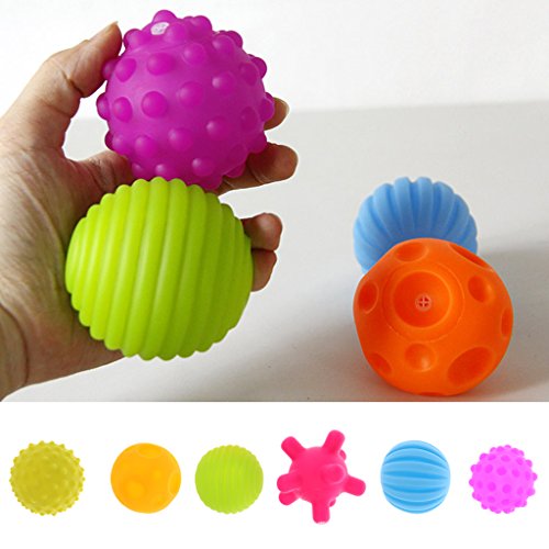 - 明るい色と興味深いテクスチャは、この楽しいボールが想像力を設定します。