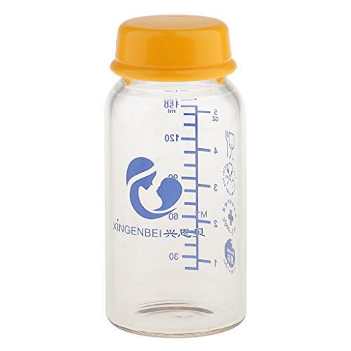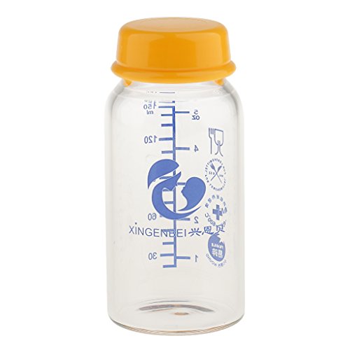 Prettyia ベビー ガラス 母乳保存ボトル 哺乳瓶 ふた付 150ml 3色選べ - 黄