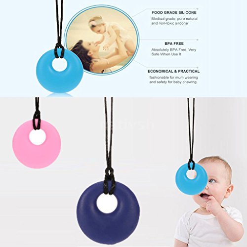 Prettyia 安全シリコン 赤ちゃん ベビー 歯がため 歯固め 授乳ネックレス おしゃぶり ペンダント 9色選べ - ダークブルー