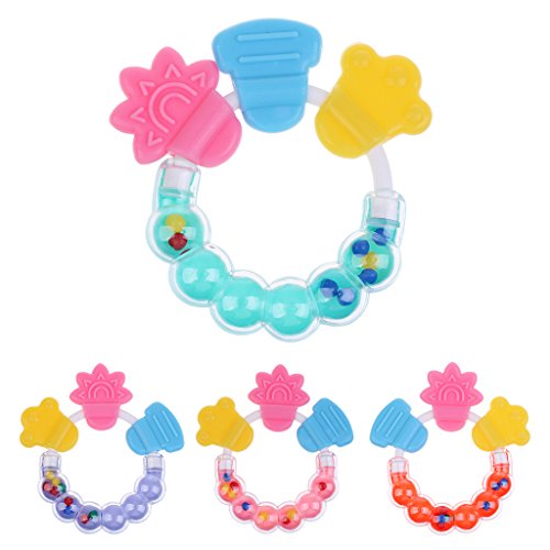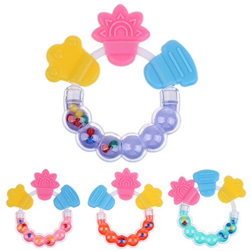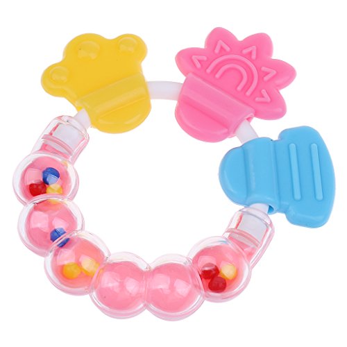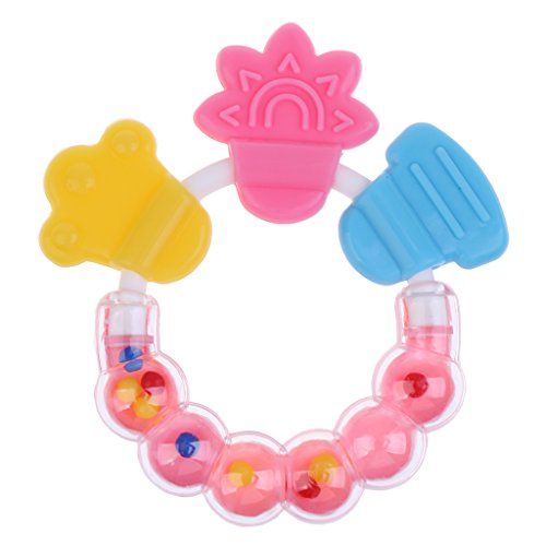 Prettyia 赤ちゃん 安全無毒 シリカゲル 歯がため 歯固め ガラガラ 贈り物 4色選べ - ピンク