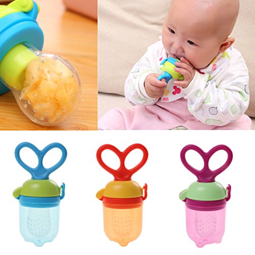 - 赤ちゃんが食べ物を楽しむためにシリコーンストレーナネットを吸うためにハンドルを保持します。