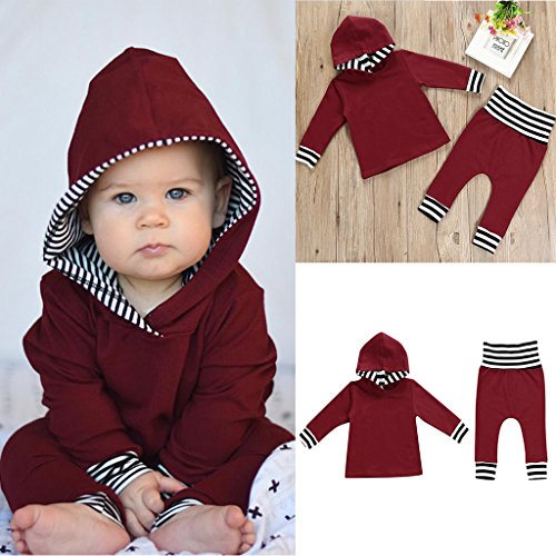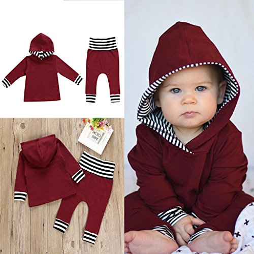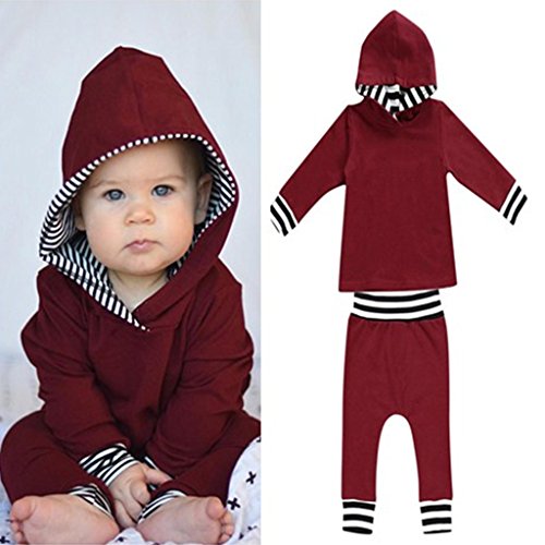 Prettyia 赤ちゃん 綿 普段着 フード付 長袖 パーカー トップ パンツ 快適 贈り物 4サイズ選べ - 100