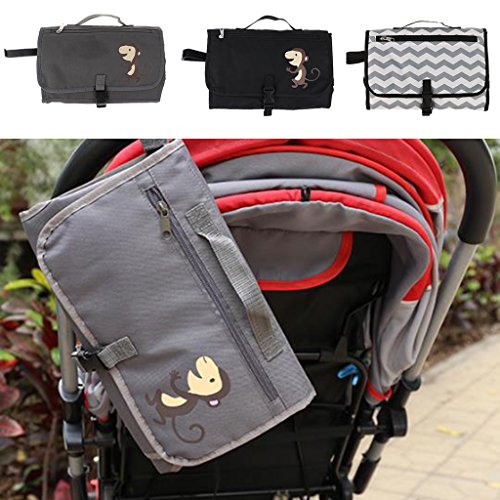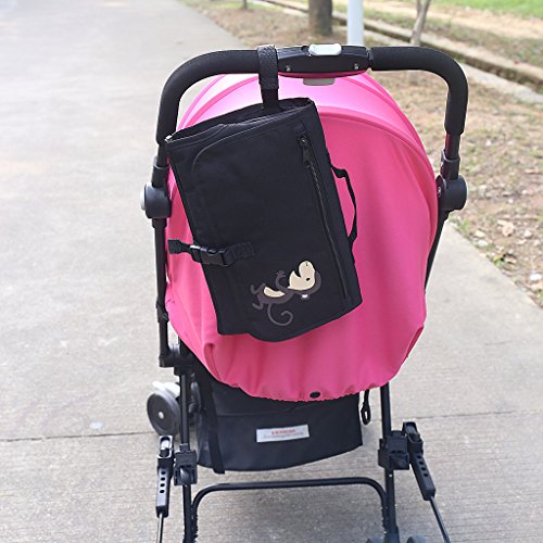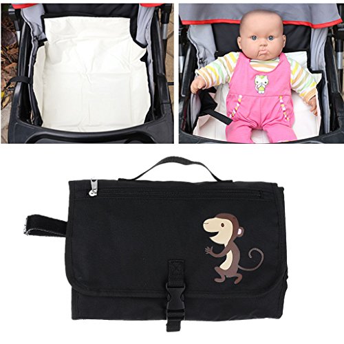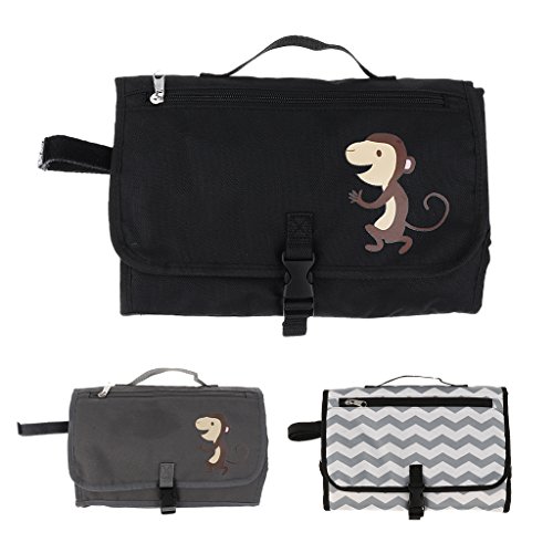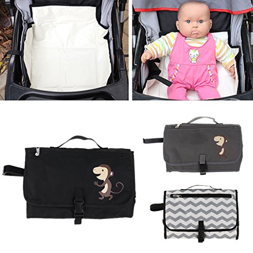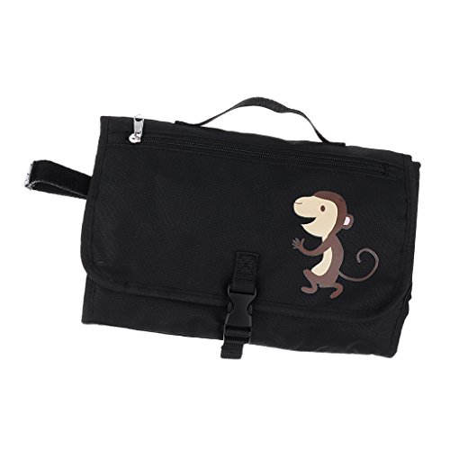 Prettyia 折りたたみ 赤ちゃん用 旅行 おむつ 交換 パッド 防水 マット バッグ ストレージ ポータブル 全3色 - ブラック