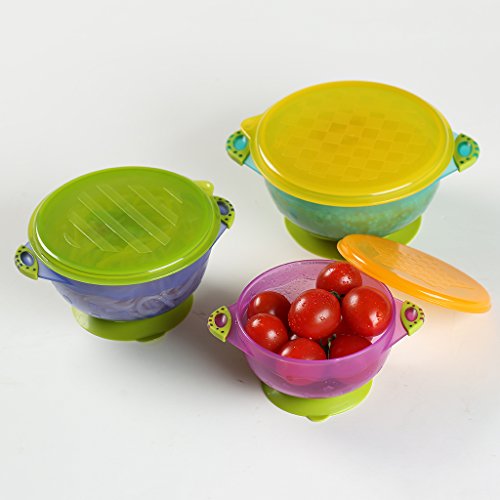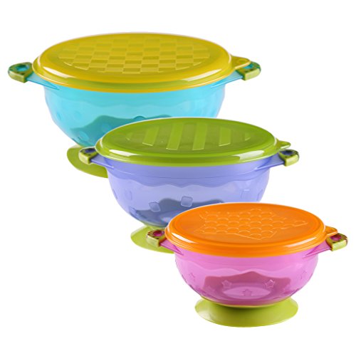 - 蓋付きの3つの異なる色と大きさの赤ちゃんボウルが含まれています。