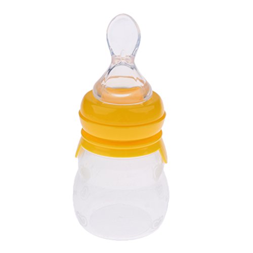 Prettyia 2 in 1 シリコン製 ベビー 哺乳瓶 & シリコン スクイズ フィーダー 160ML 全4色 - 黄