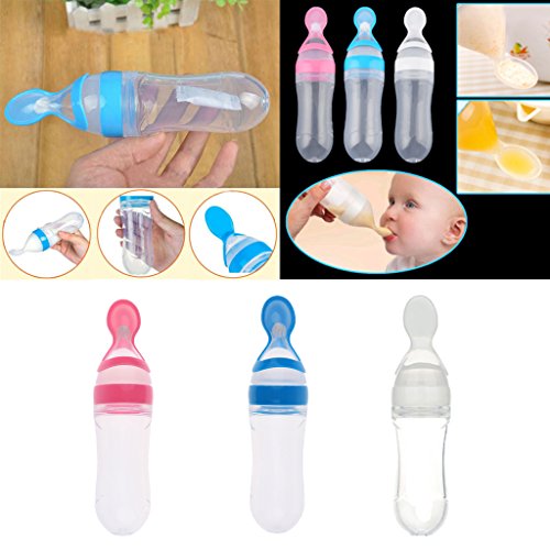 Prettyia シリコン スクイズ フィーダー スプーン付き 90ML 全3色 - ピンク