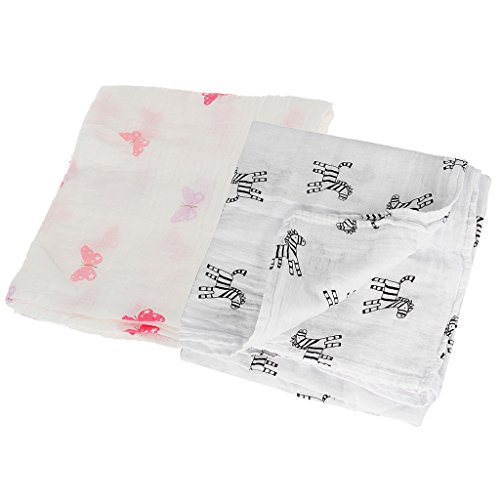 Prettyia 2枚入り 新生児 ベビー モスリン コットン 毛布 ブランケット ラップ 柔らかい