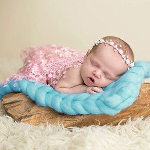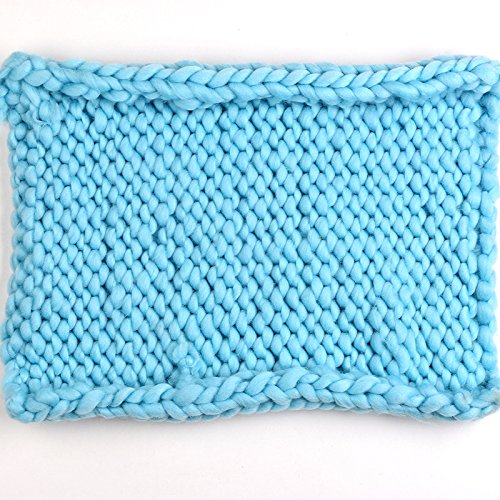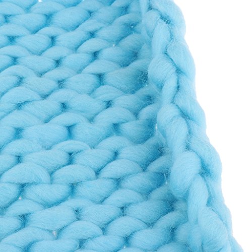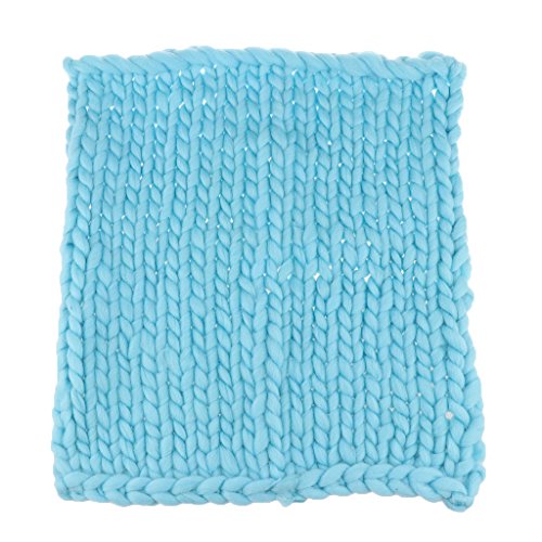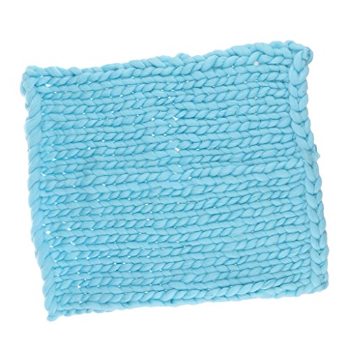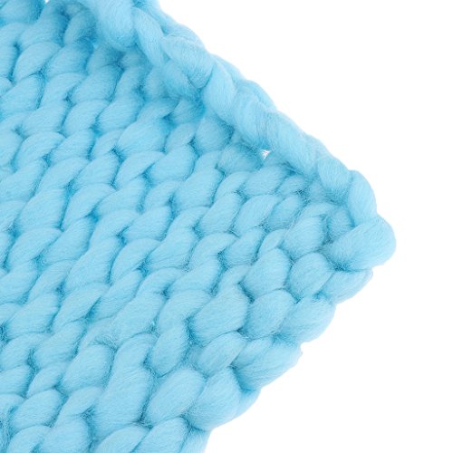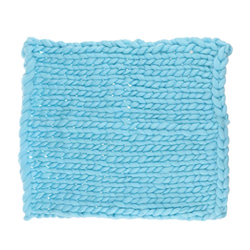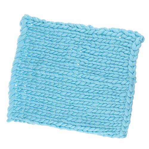 Prettyia ウールブレンド 子供 写真の小道具 ブランケット 編み紐 編み物の毛布 新生児 赤ん坊 パーティー 全4色 - 青