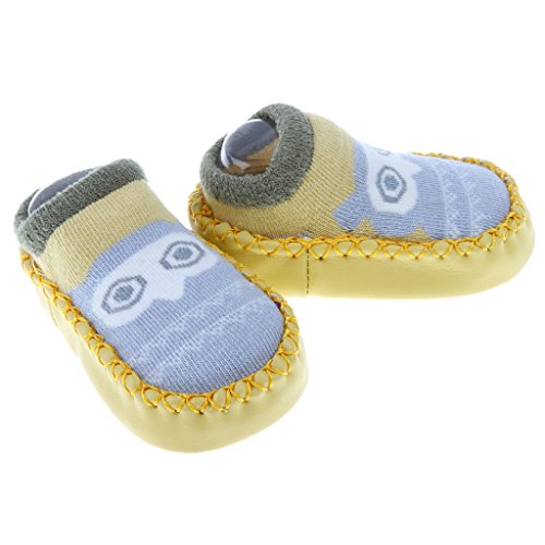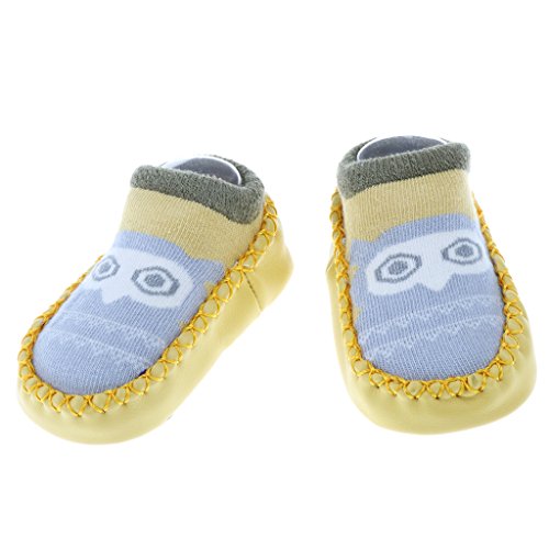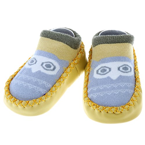 Prettyia 赤ちゃん ベビー ブーティ ソックス 靴下 コットン 通気性 柔らかい 4サイズ6色選べ - イエローフクロウ, XL