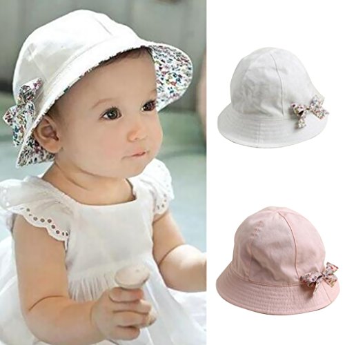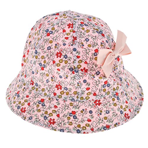 Prettyia ベビー 花 コットン ちょう結び ボンネット バケツ サンバイザー 帽子 ハット コットン 全2色 - ピンク