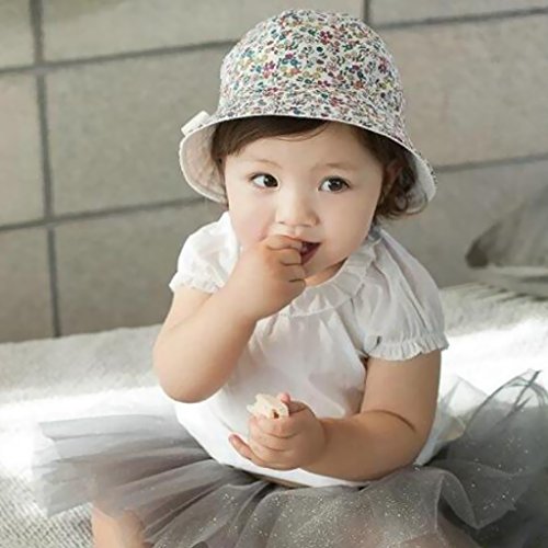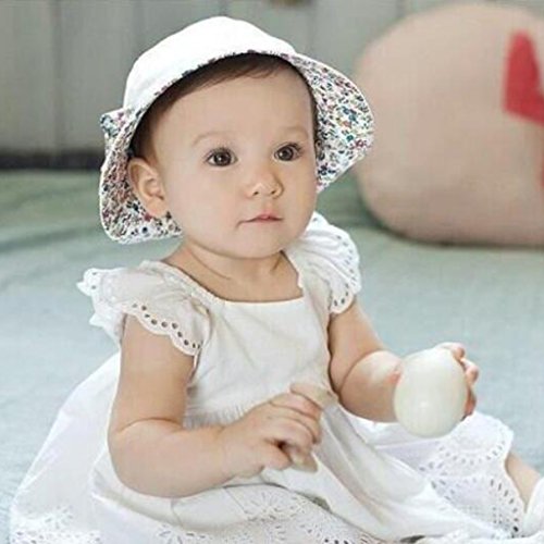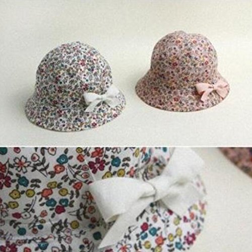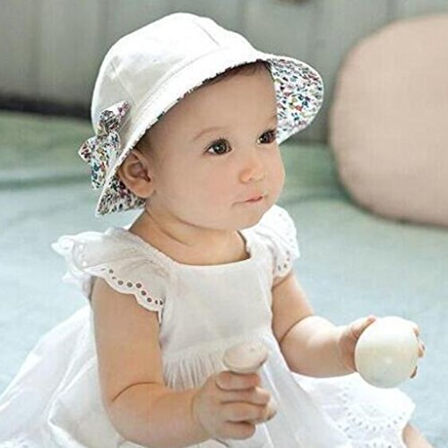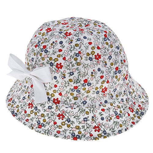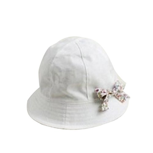 Prettyia ベビー 花 コットン ちょう結び ボンネット バケツ サンバイザー 帽子 ハット コットン 全2色 - ホワイト