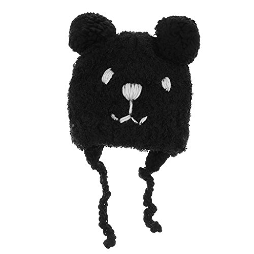 Prettyia 赤ちゃん 幼児 冬 漫画のクマ ビーニー 帽子 イヤーフラップ キャップ 暖かい プレゼント 全3色 - ブラック