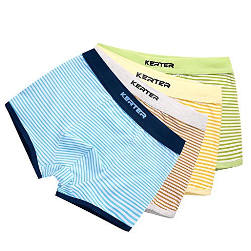 Prettyia 2枚 4-11歳 男の子 綿 下着 ボクサーブリーフ パンツ ショーツ ストライプ柄 快適 全5サイズ2色 - イエロー+ブラウン, 140cm