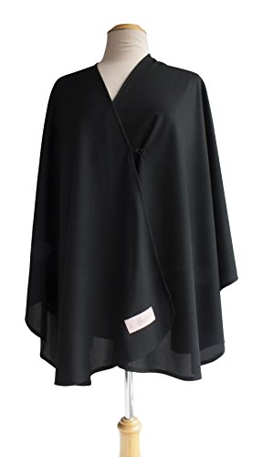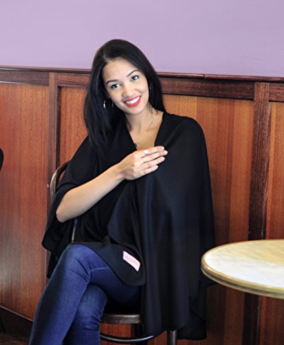 Black Nursing Cover in UV-rated 50+ fabric with antibacterial properties;Lightweight, extra soft, breathable and crush resistant 100% polyester fabric;One size fits all; 63 x 53.25 (160cm x 135cm);Discrete and fashionable enough to be worn as an everyday shawl;Imported