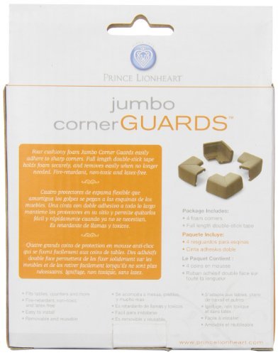 The Prince Lionheart Cushiony Jumbo Corner Guards is the perfect way to protect your child from sharp corners. The four corner guards can easily be put on sharp corners. Full-length double-stick tape keeps corner guards securely fastened and removes quickly and easily when no longer needed.