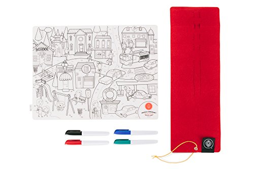 The Colour and Draw by Prince Lionheart is a food-safe silicone placemat free of BPA, PVC, lead, latex, and phthalates that entertains kids for hours on end.Whether they are waiting for dinner to arrive, sitting in the back of the car, on an aeroplane, or just "bored" at home, these reusable "canvases" will tap into kids' creativity and captivate them for hours.Comes with 4 brightly coloured dry-erase markers that are non-toxic and washable.Placemat easily folds and stows safely away with the markers in a soft felt carrying case so the masterpiece can be saved until unfurled the next time.Fits easily in nappy bags, purses, backpacks or carried on its own for reusable entertainment at home, at restaurants or on-the-go! Our Colour and Draw placemats are designed to go anywhere so that our kids can be artistic everywhere.cause it's always refreshing for us to see the kids unplugged and still totally engaged.