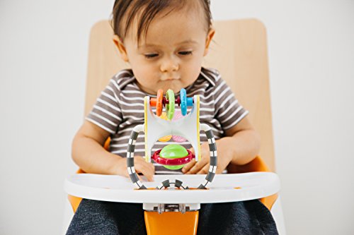 付属のテーブルにはセットのおもちゃの取付が可能で遊ばせることがでます。テーブルにマットをセットすればお食事チェアに早変わり。ベビーチェアそのものを大人用の椅子にも取付可能な固定用ベルト付き。