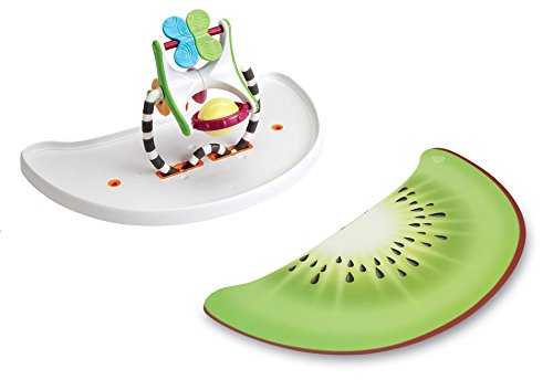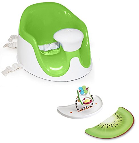 付属のテーブルにはセットのおもちゃの取付が可能で遊ばせることがでます。テーブルにマットをセットすればお食事チェアに早変わり。ベビーチェアそのものを大人用の椅子にも取付可能な固定用ベルト付き。