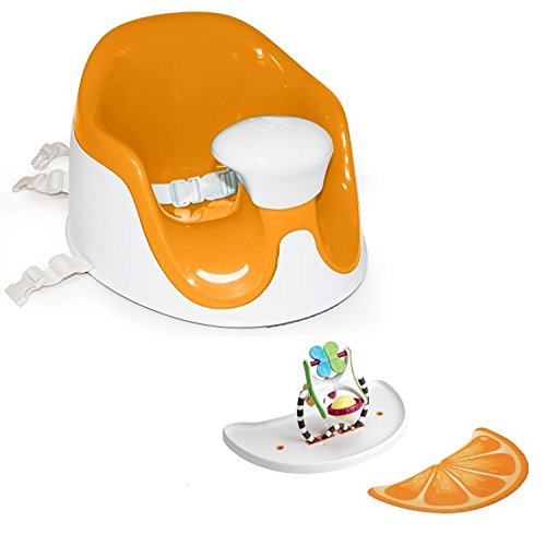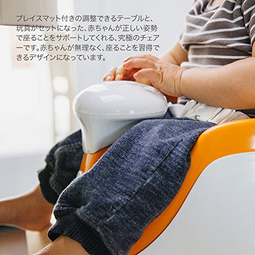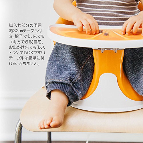 付属のテーブルにはセットのおもちゃの取付が可能で遊ばせることがでます。テーブルにマットをセットすればお食事チェアに早変わり。ベビーチェアそのものを大人用の椅子にも取付可能な固定用ベルト付き。