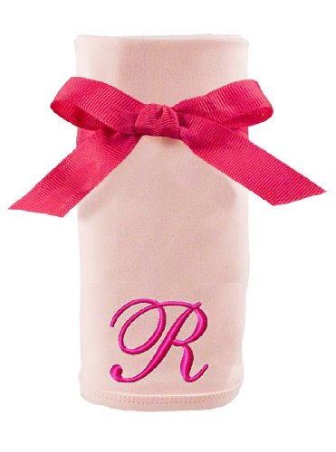 Princess Linens Embroidered Pink Initial Cotton Knit Blanket, R by Princess Linens