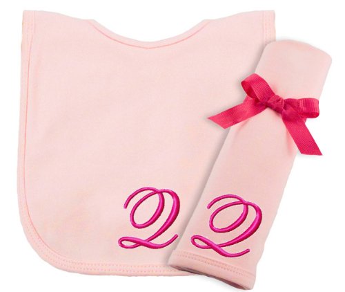 Princess Linens Embroidered Cotton Knit Bib and Burp Set - Pink, Q by Princess Linens