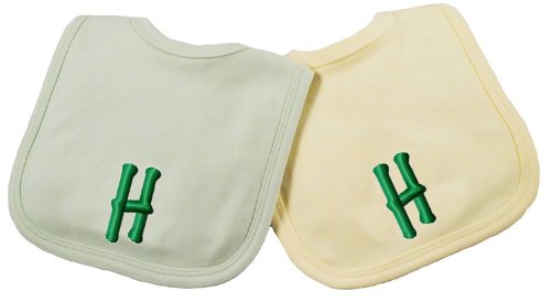 Princess Linens Embroidered Cotton Knit Bib Set - Yellow/Sage, H by Princess Linens