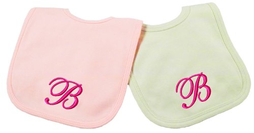 Princess Linens Embroidered Cotton Knit Bib Set - Pink/Sage, B by Princess Linens