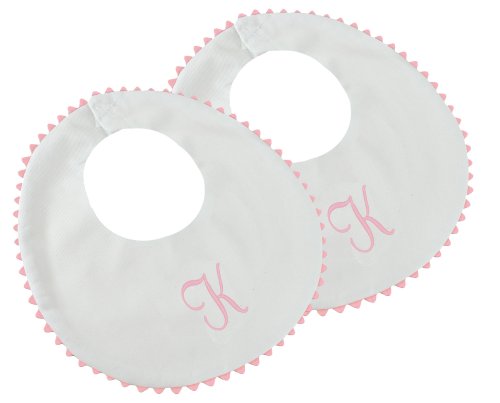 Set of 2 embroidered bibs;Personalized with a single letter for a keepsake;Hook and loop closure at the back of the neck for easy on and off;Trimmed in baby pink and sure to coordinate with almost any outfit;Great new baby gift