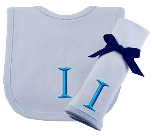 - Princess Linens Embroidered Blue Initial Cotton Knit Bib and Burp Cloth Set, I