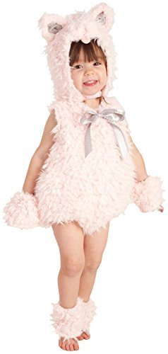This shaggy pink todder kitty costume includes the pink furry body, cat ear hood, wrist cuffs and anklettes.