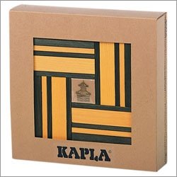 20 Green and 20 Yellow planks. The colors of the spring for more building Pleasure. Non toxic colors and unique Kapla design. Great for gifts and includes Art Book with photos.