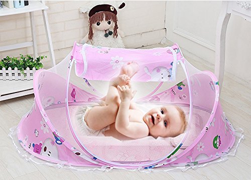Baby Mosquito NetPortable Folding Baby Crib NettingBaby Cots Newborn Foldable Crib Net with Summer Sleeping Mat and Music PackPerfect for 0-18 Month Baby (Pink) [並行輸入品]