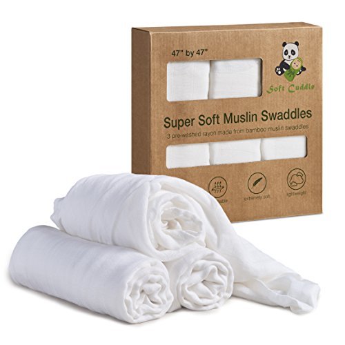 Soft Cuddle 100% Bamboo Muslin Swaddle Blankets | Burp Cloth | Nursing Cover | Changing Pad | Extra Large 47 x 47 inch Ultra Soft Pure White Unbleached Dye Free Unisex for Baby Boy and Girl (3 Pack) [並行輸入品]