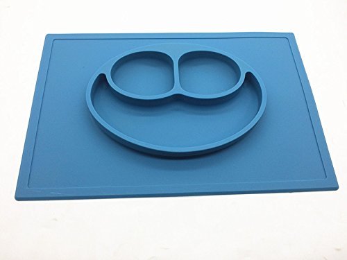 Smiley Face Silicone Baby Placemat - Square - Blue [並行輸入品]