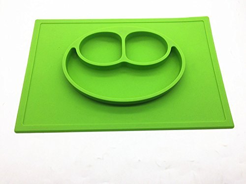 Smiley Face Silicone Baby Placemat - Square - Green [並行輸入品]