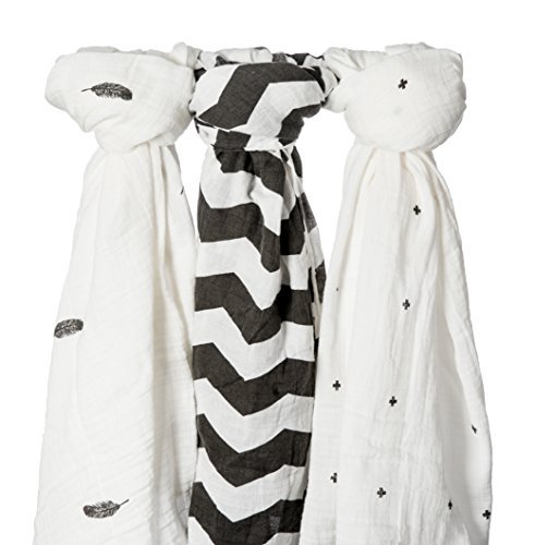 Muslin Swaddle Blanket Baby Swaddle 100% Cotton 47x47 Inches 3 Pack Soft Breathable Cross Feather Black and White Unisex Design Burping Cloth Stroller Cover The Comfort Collective [並行輸入品]