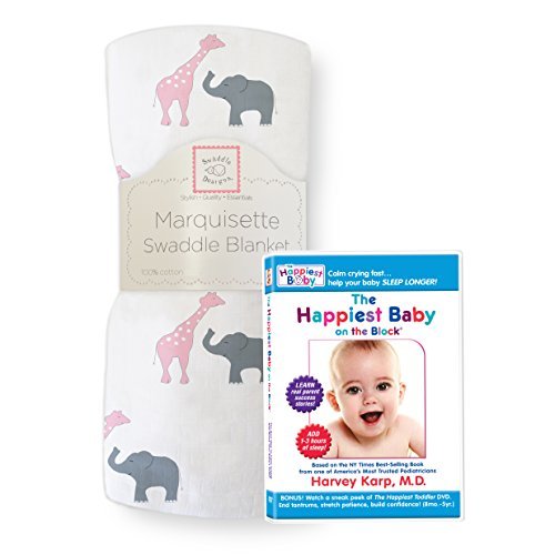 SwaddleDesigns Marquisette Swaddling Blanket Premium Cotton Muslin and The Happiest Baby DVD Bundle Pink Safari Fun [並行輸入品]